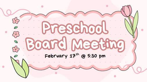 Feb 17 5:30 PM17:30 Preschool Board Meeting - Preschool Tuesday, February 17, 2026 5:30 PM 6:30 PM 17:30 18:30 First Presbyterian Church (map) Google Calendar ICS View Event →