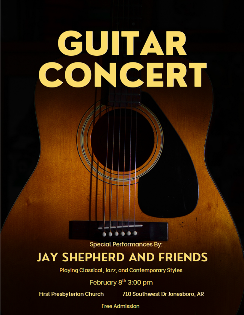 Feb 8 3:00 PM15:00 Community Concert Series - Jay Shepherd and Friends Sunday, February 8, 2026 3:00 PM 4:30 PM 15:00 16:30 First Presbyterian Church (map) Google Calendar ICS View Event →