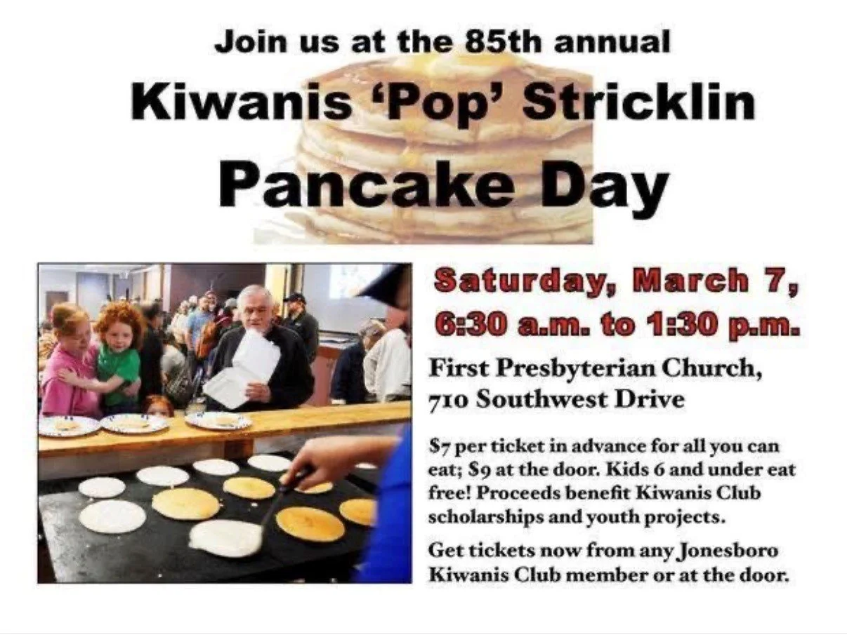 Mar 7 6:30 AM06:30 Kiwanis 85th Annual Pop Stricklin Pancake Day - HH Saturday, March 7, 2026 6:30 AM 1:00 PM 06:30 13:00 First Presbyterian Church (map) Google Calendar ICS View Event →